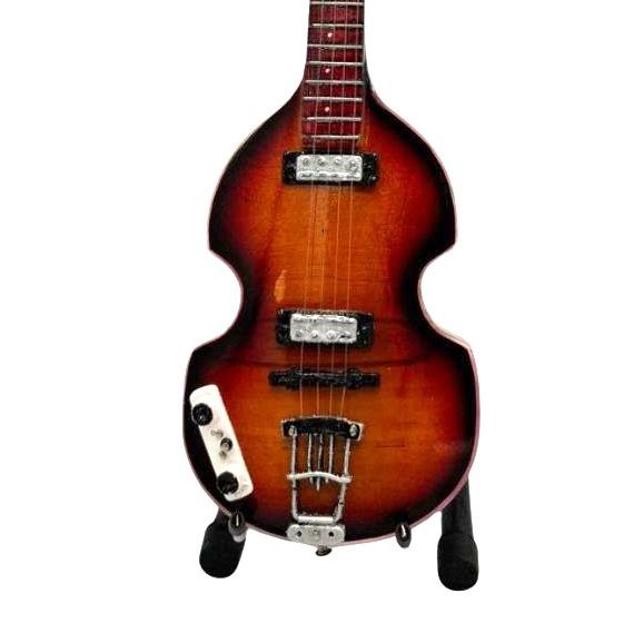 Miniatuur Gitaar van Paul McCartney – een handgemaakt miniatuur instrument voor echte muziekliefhebbers. Uitvoering: Bass. Bekend van The Beatles.
